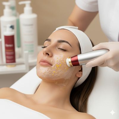 التغذية بالموجات : يتم استخدام الموجات فوق الصوتية لدفع سيروم الغني بفيتامين سي بعمق لتوحيد لون البشرة وتفتيح التصبغات.